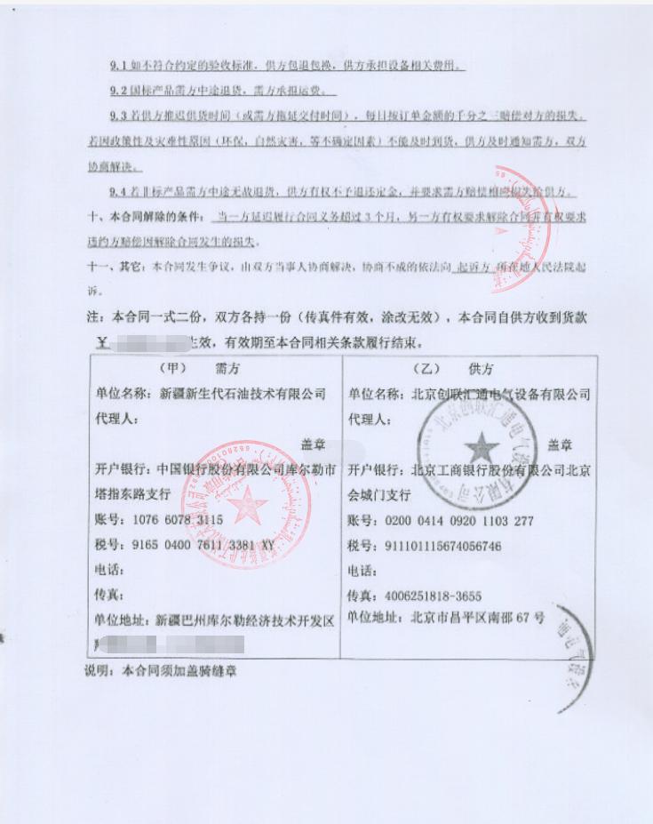 2019年4月8日新疆新生代石油技術有限公司與我司簽訂產品購銷合同,合同編號為CLHT-WT20190408090。訂購10KV干式變壓器一臺,型號為SCB13-250KVa/10-0.4,使用于新疆庫爾勒地區。